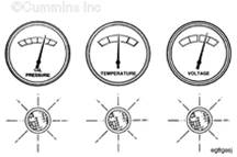 康明斯發動機運轉時,冷卻液溫度表顯示發動機冷卻液的溫度。最后一個開口可能被堵上,或者用作船只制造商需要的其它儀表。