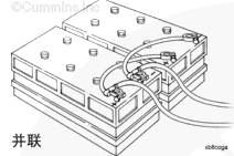 插圖所示為一種典型的蓄電池并聯連接。這種連接使發動機得到雙倍的起動電流。