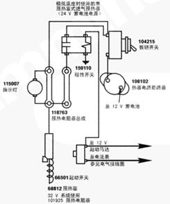 圖 14. 預(yù)熱塞式預(yù)熱器接線圖 - 24 V 系統(tǒng)。