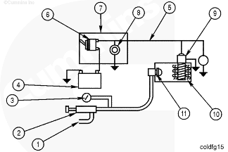 準(zhǔn)備康明斯起動發(fā)動機(jī),檢查燃油供給、冷卻液液位、變速箱或動力輸出裝置是否位于空檔,確定所有的手都接觸不到發(fā)動機(jī)。關(guān)閉預(yù)熱塞開關(guān)。(紅色指示燈會熄滅。)20 到 30 秒(預(yù)熱塞加熱所需時間)后,操作加注泵,起動發(fā)動機(jī)過程中保持 241 kPa [35 psi] 的燃油壓力。在低于 -34° C [-30°F] 的溫度下需要使用稍高的噴嘴壓力,因為燃油更稠。如有疑問,試起動之前先試用噴嘴。發(fā)動機(jī)起動前一般先轉(zhuǎn)幾圈。