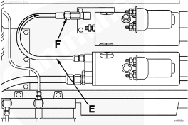 大型吸油軟管將油底殼集油槽與預潤滑泵相連接。為了實現這個目的,在新 K38 和 K50 油底殼上增加一個附加端口。改型安裝時使用離泵最近的機油加熱器端口。絕不要利用機油排油端口進行改型安裝。吸油軟管長度不應超過 1422 mm [56 in] 長。軟管需要使用卡箍,以避免磨損和過大的振動。