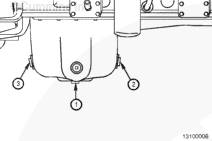 如果換油吸油裝置固定在油底殼的起動馬達側的側面排油出口 (2) 上,則必須將其移動到另一側的排油口 (3)。
