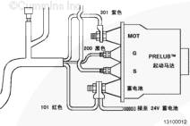 定時器電磁閥控制預潤滑循環。電流通過鑰匙開關提供給定時器。當壓力在 17 或 28kPa [2.5 或 4.0-psi] 時常閉壓力開關打開,接地路線導通。開關打開時,在 2 至 3 秒延遲后,電流改變方向流入車輛電磁閥,以便拖動發動機。這個設備要裝在發動機外,以限制振動和熱量暴露。需要選擇底盤上一個位置,以方便今后接近,而且沒有過多熱量暴露和機械損壞。每一個起動循環定時器將工作。絕不要安裝一個旁通開關;它將使系統不受控制。