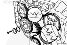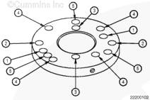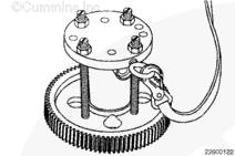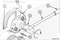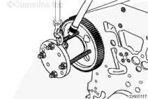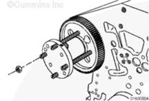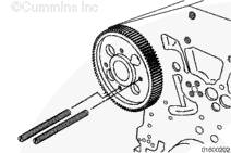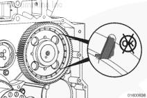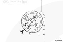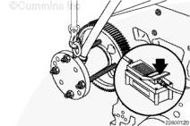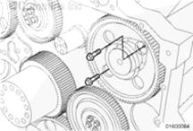 如果需要,旋轉曲軸以使凸輪軸齒輪上的孔與止推板上的螺栓孔相通安裝兩顆止推板安裝螺栓。擰緊螺栓。扭矩值:  45  n.m  [33 ft-lb]