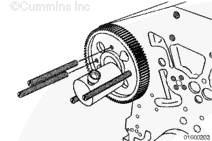 檢查并記錄鍵相對于凸輪軸齒輪旋轉方向的偏移方向(相同或相反)。拆卸鍵。
