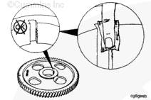 齒輪安裝到凸輪軸上以后,凸輪軸齒輪上的正時標記必須從齒輪前方可以看到。