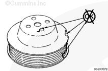 如果發現皮帶輪損壞,也必須檢查風扇轂。參考第 8 節中的步驟 008-036。