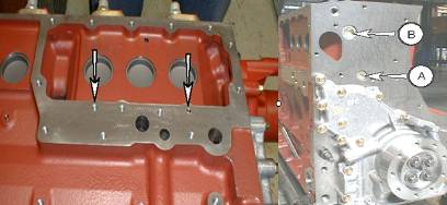 1、檢查缸體上水泵下面的螺栓A(M22*1.5mm在主油道上)可導致機油進入冷卻系統。