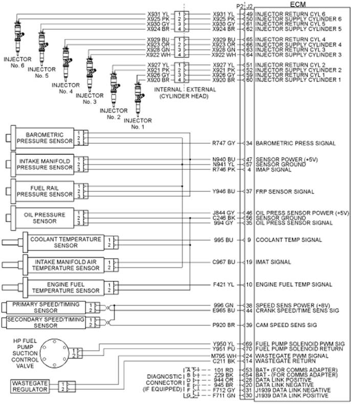 例如,一個線識別f730-or上示意圖將顯示一個橙色線與回路數f730。f730-or標識功率供油壓力傳感器。