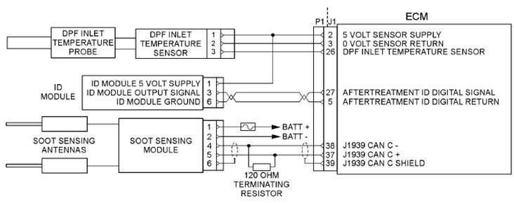 該1204e-e44引擎連接到J2連接器上的ECM示意圖